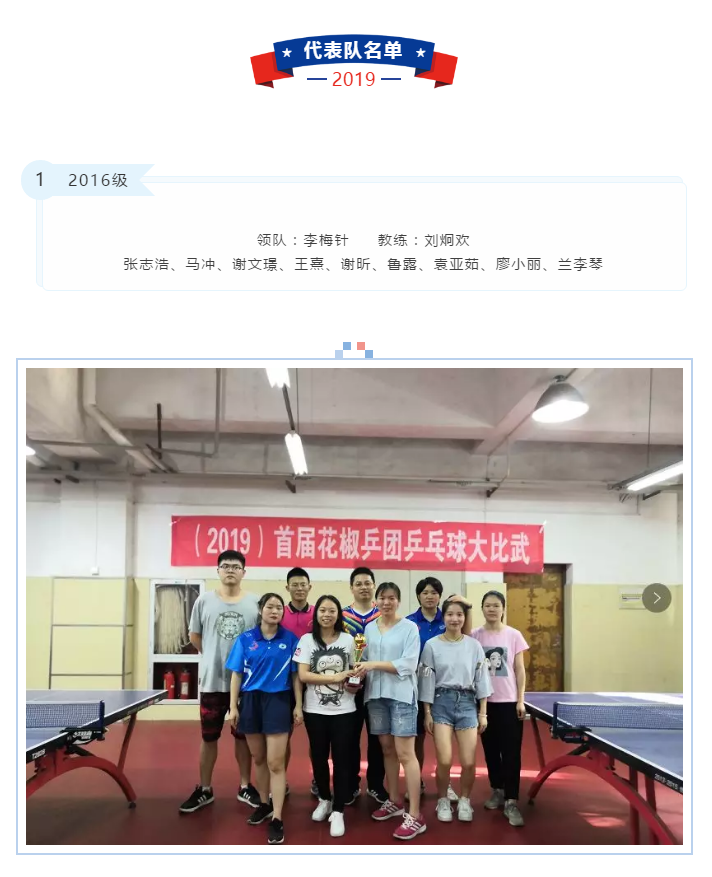 (2019)首届花椒乒团乒乓球大比武于6月24至6月25日在华东交大南区乒乓球馆正式举办。本次比赛:采用五局三胜制,每局11球,设三个比赛项目:分别是混合团体,男子单打,女子单打。