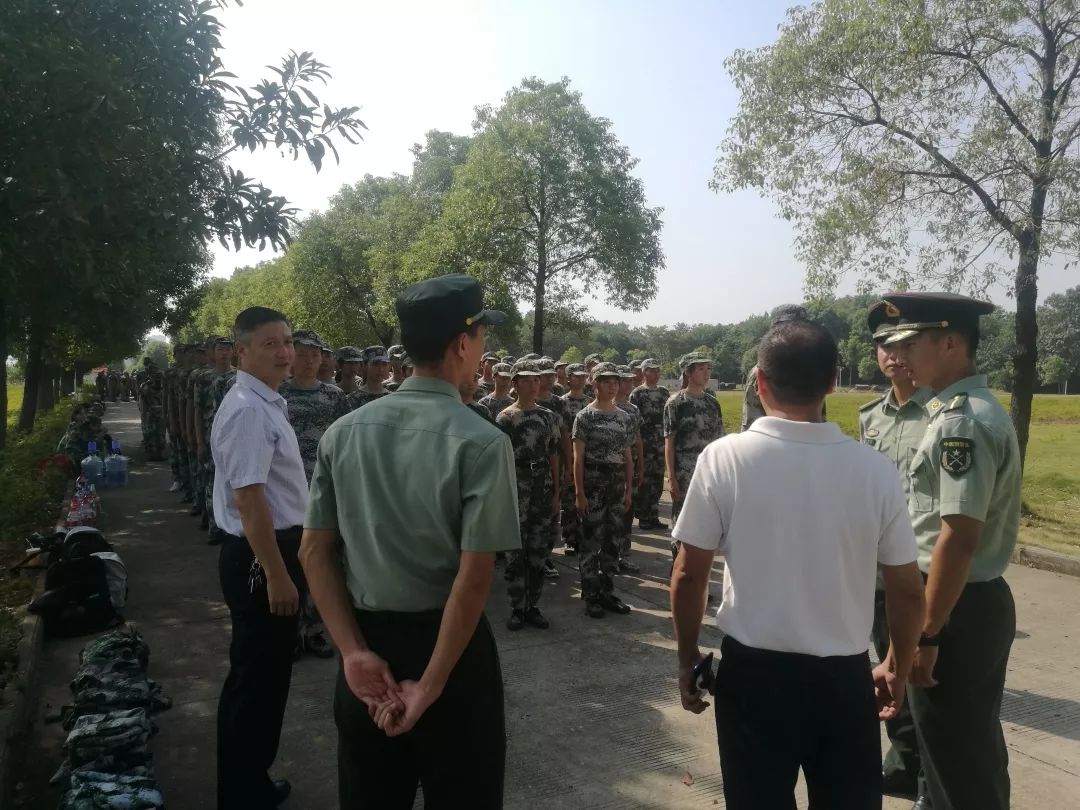 烈日下,党委书记李梁华边走边看,向教官详细了解了员工军训分队情况、军训具体项目、军训时间等,并对相关军训安排给予了充分肯定。