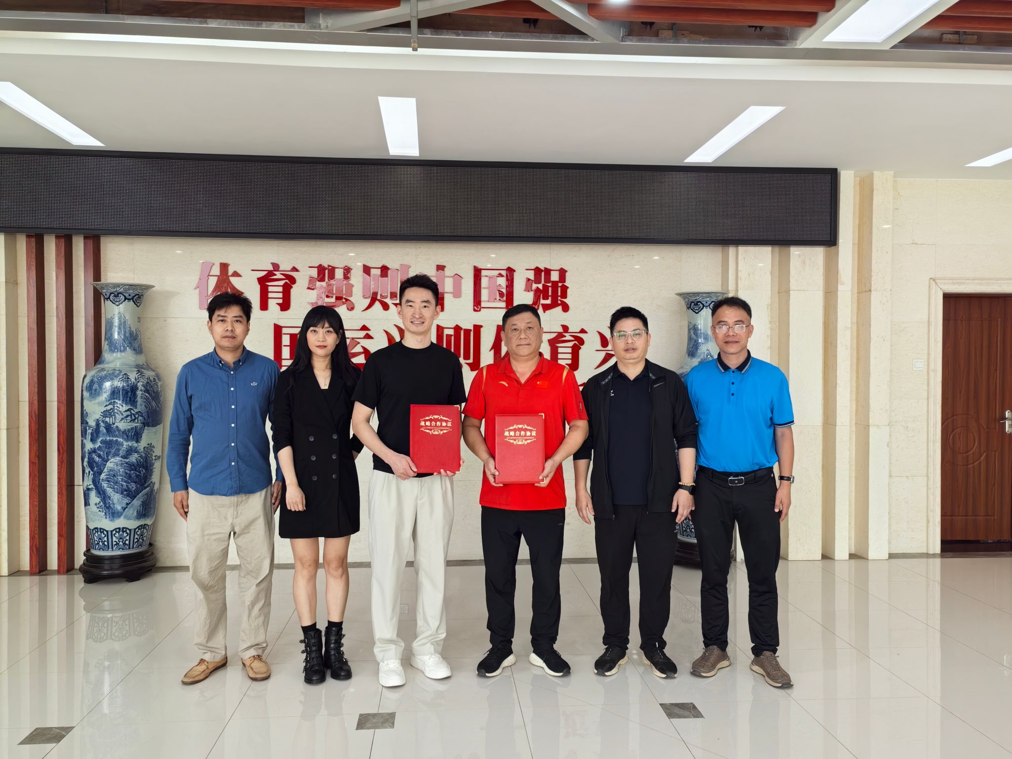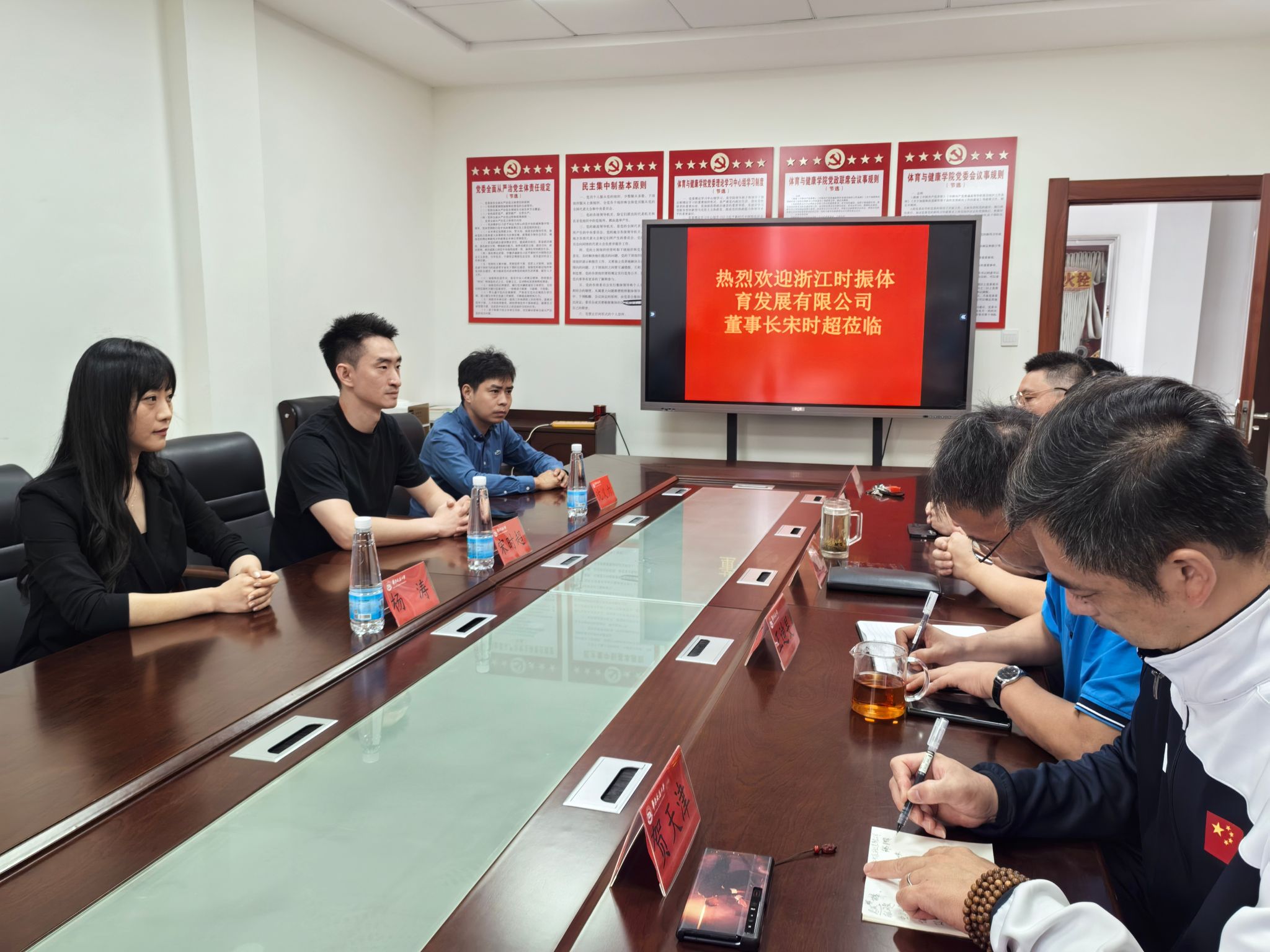 经理邓卫权、公司党委副书记王迪旻、院教学助理贺天津等热情接待了宋时超一行,双方就合作事宜进行洽谈。邓卫权向客人简要介绍了公司概况,以及专业设置、团队建设、高水平运动队、人才培养、创业就业等情况。宋时超介绍了公司发展历程,以及从运动员转变为体育企业经营者的心路历程,希望与学校在人才培养、创新创业、实习培训等多方面深度融合、共同发展。双方就合作事宜进行了深入交流,并最终签订合作协议。