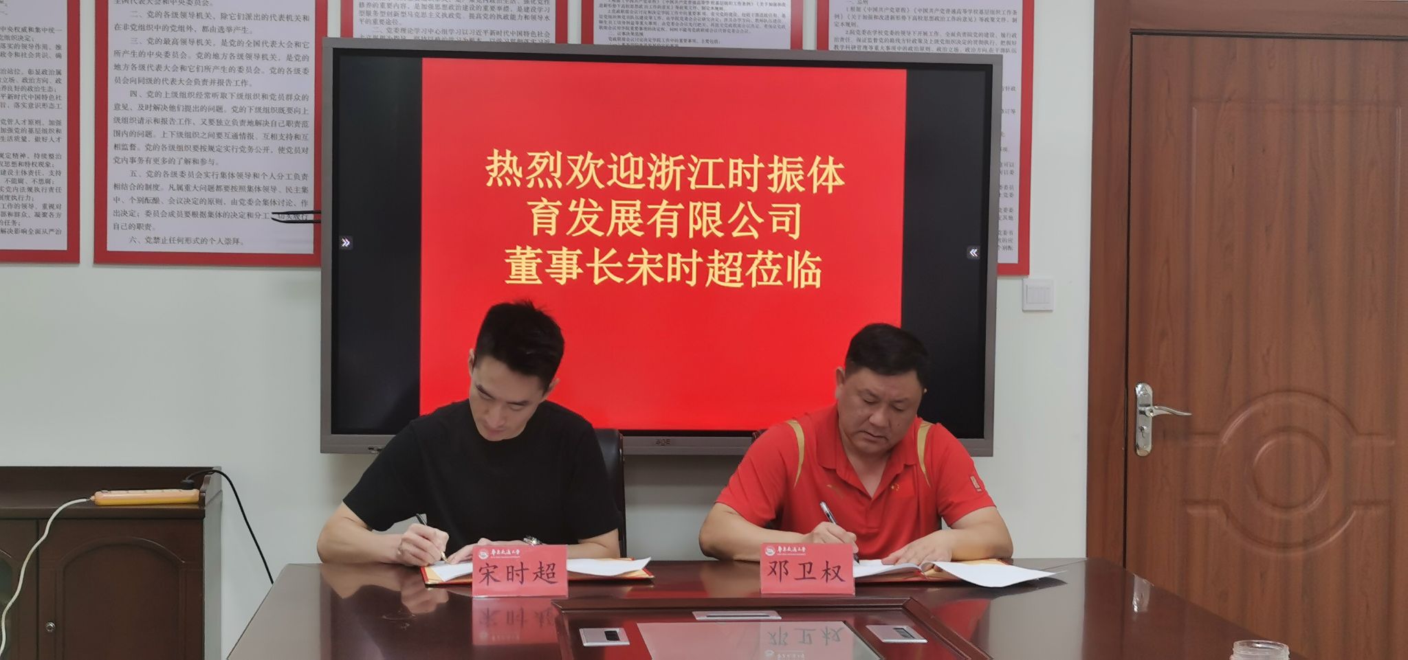 浙江时振体育发展有限公司人力资源部经理杨涛、财通证券江西分公司经理沈义力,以及公司竞赛中心主任张扬、体育专业教学部主任李政、小球教研室主任(校乒乓球队主教练)王剑等参加洽谈会和签字仪式。