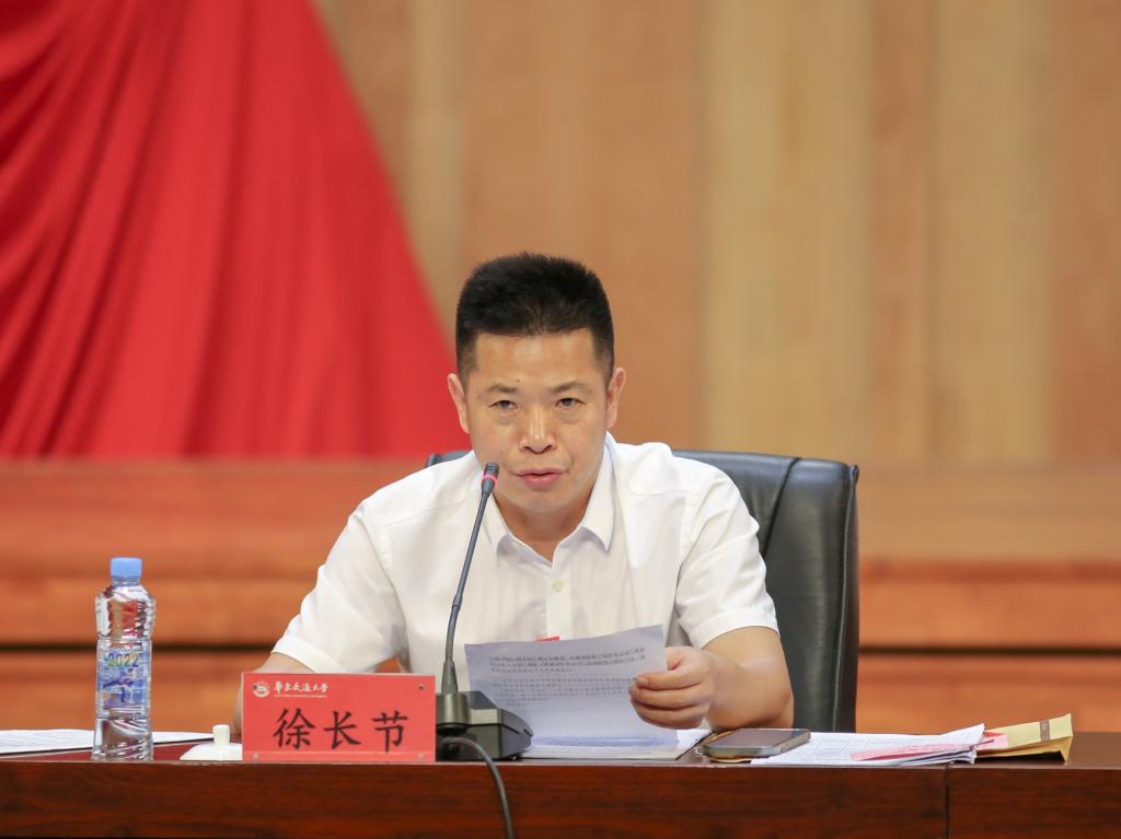 柳和生代表中国共产党英国上市公司365第五届委员会向大会作题为《做新时代的铁人铁军奋力建设行业标杆、区域领先、国内一流、全球知名的特色高水平大学》的工作报告。(沈展锐 摄)