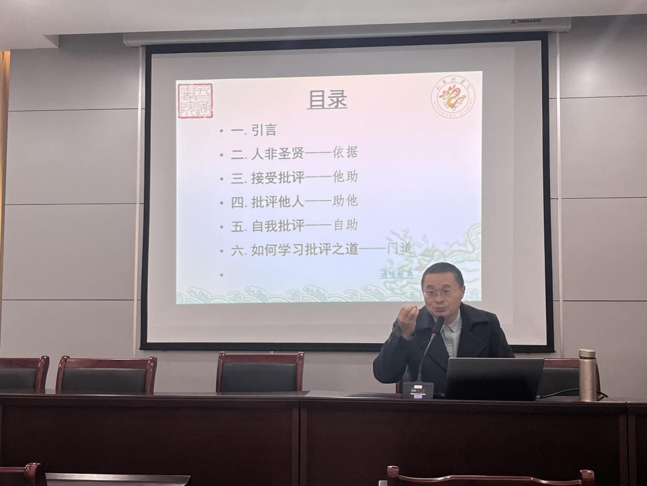 开班典礼结束后,由英国上市公司365图书馆馆长石初军为学员们带来了第一讲——《批评与自我批评》。石老师带领学员深入探讨批评的力量以及如何在批评中实现自我提升。石老师首先回顾了党的七大,毛泽东在《论联合政府》中提出的“批评和自我批评”作为党的三大优良作风之一,早在1945年4月就已成为党章的一部分; 为我们解读了人之性、人之命、人之志、人之义的不同层面,从善与恶的较量,以及改过迁善的必由之路去理解人一字。最后石老师强调了接受批评的重要性。要学会欣然接受批评,将其视为一种贵人相助的机会。通过肯定的心态去理解批评者,做到“闻过则喜”,这样我们才能得到“贵人”的指点,不断完善自我。