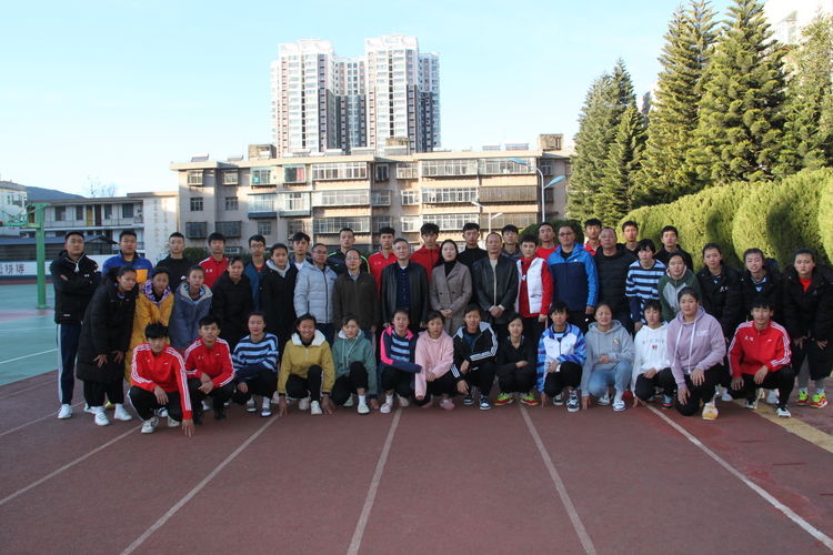 授牌仪式结束后,大理州体育中学校领导陪同李梁华书记一行参观了大理州体育中学日常教学、训练设施,宋涛老师观看并详细了解了女排员工的授课和训练情况,大家一起合影留念。