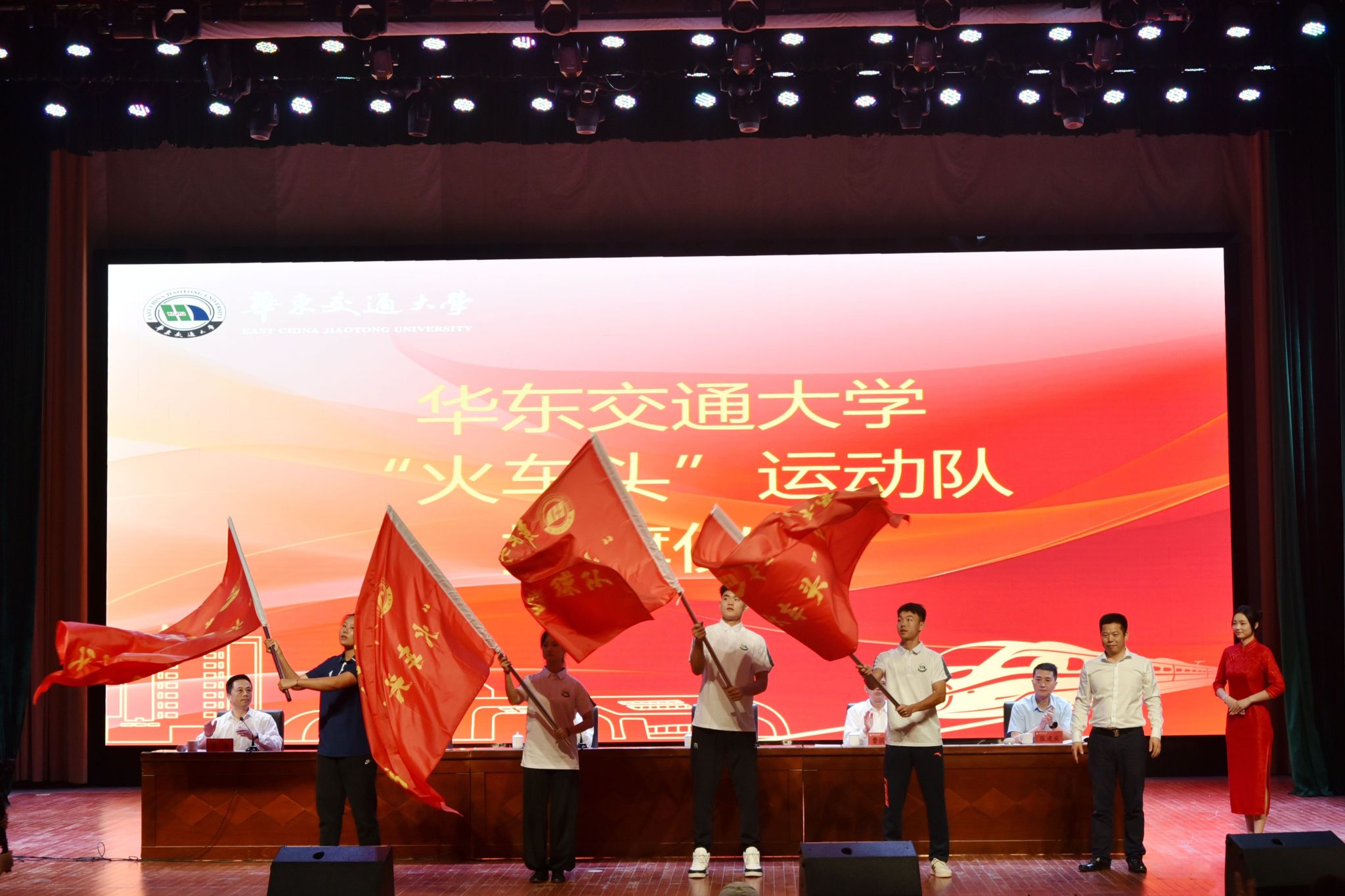 公司党委副书记、董事长徐长节为“火车头”运动队授旗。
