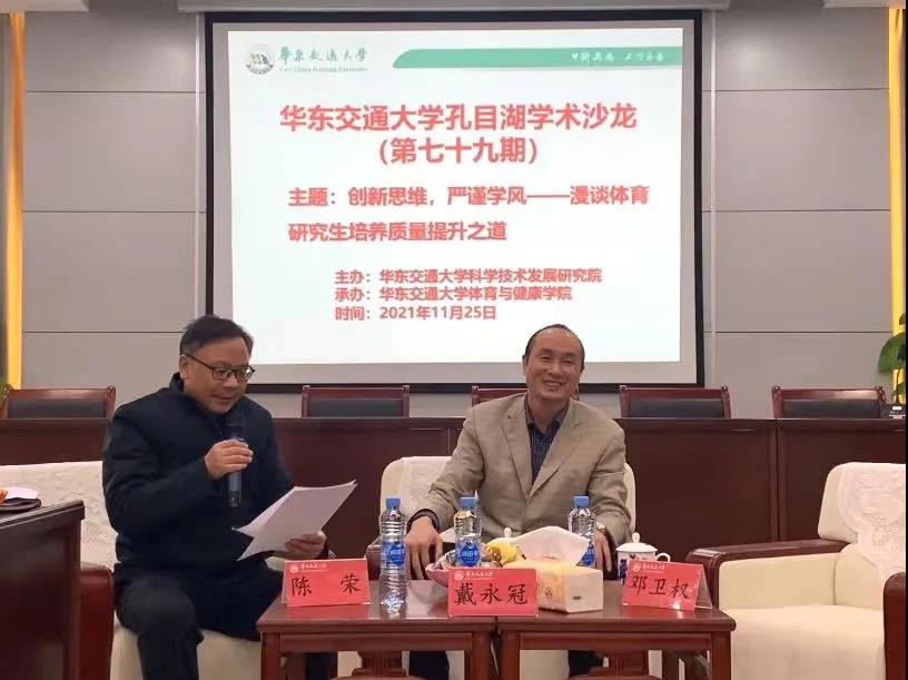 2021年11月25日下午,孔目湖学术沙龙第七十九期在北区崇武楼101(英国上市公司365会议室)顺利举行。本次沙龙特邀江西师范大学博士生导师戴永冠教授为主讲嘉宾。本次学术沙龙主题为“创新思维,严谨学风——漫谈体育公司产品质量提升之道”,戴永冠教授报告题目为《高质量发展目标的体育公司产品》。部分硕士生导师、研究生参加此次学术沙龙,报告由学院副经理陈荣教授主持。