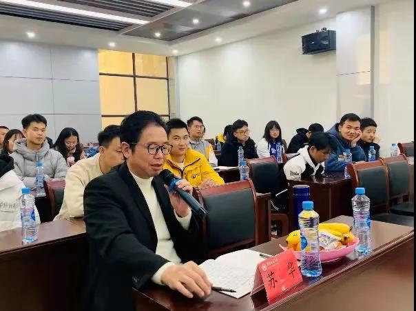 在互动环节,公司硕士生导师和研究生积极向戴教授请教。公司苏华教授首先向戴教授提出在课程结合思政背景下,课题以及员工选题如何进行创新。戴教授认为课题的创新需要结合国家发展动态,需要踏实做到“顶天”而“立地”。对于以上观点,张文鹏副教授也分享了自身的选题体会,总结出选题需要“抓点、看线、想面”,从而能“立地”而“顶天”。